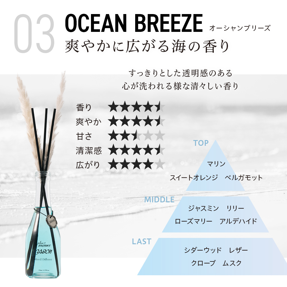 【オーシャンブリーズ】爽やかに広がる海の香り すっきりとした透明感のある心が洗われる様な清々しい香り