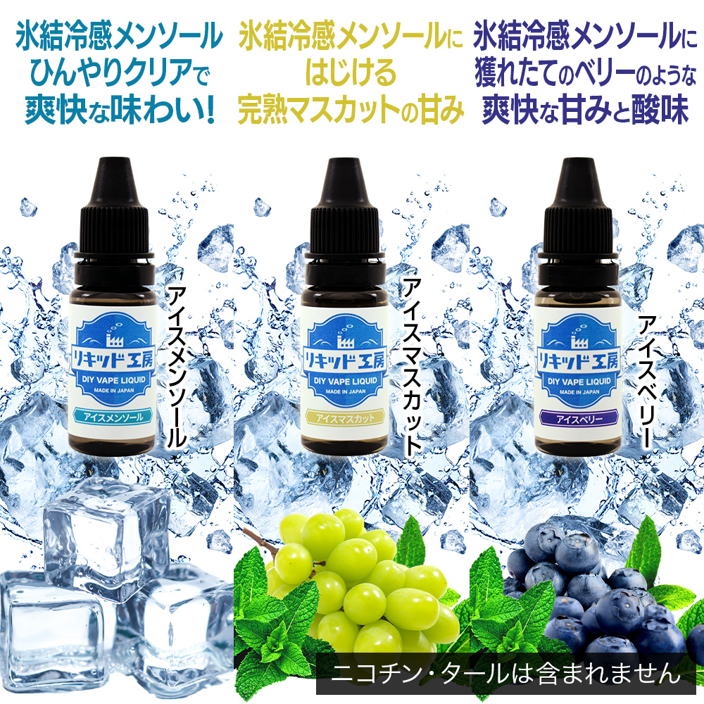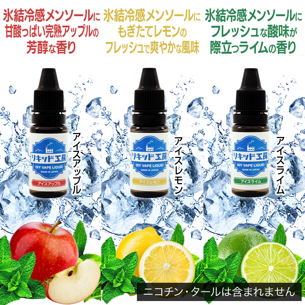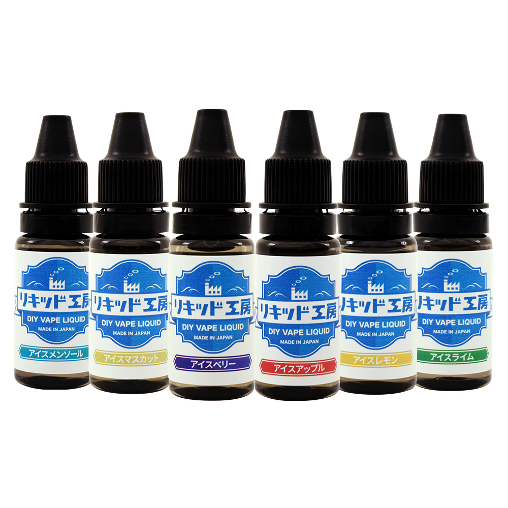 | セット内容 | リキッド工房 人気フレーバー 10ml×6本(アイスメンソール、アイスマスカット、アイスベリー、アイスアップル、アイスレモン、アイスライム) |