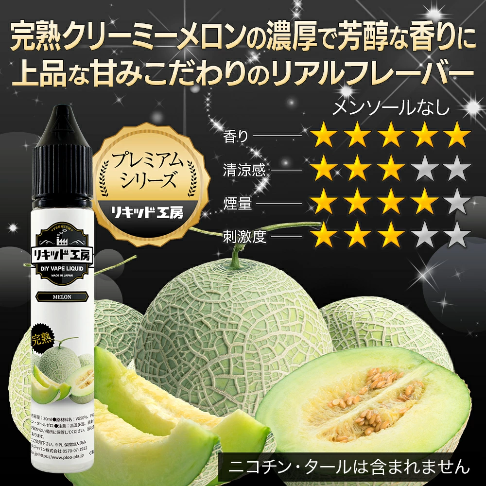 独自の製法により監修、製造した電子タバコ(VAPE)用のリキッドです。国産リキッドメーカーとして素材の品質を落とすことなく味、香りにこだわり、本格派リキッドの開発に成功しました。全て日本国内の衛生管理の行き届いた工場で製造しております。※厚生労働大臣指定の食品添加物のみ100%配合 ※日本食品分析センター検査済み