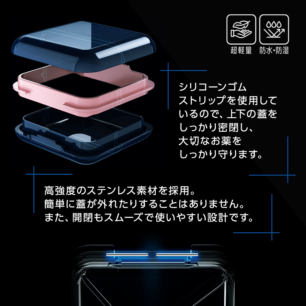 常備薬、サプリメントやビタミン剤の整理にもぴったりな防湿ピルケースです。