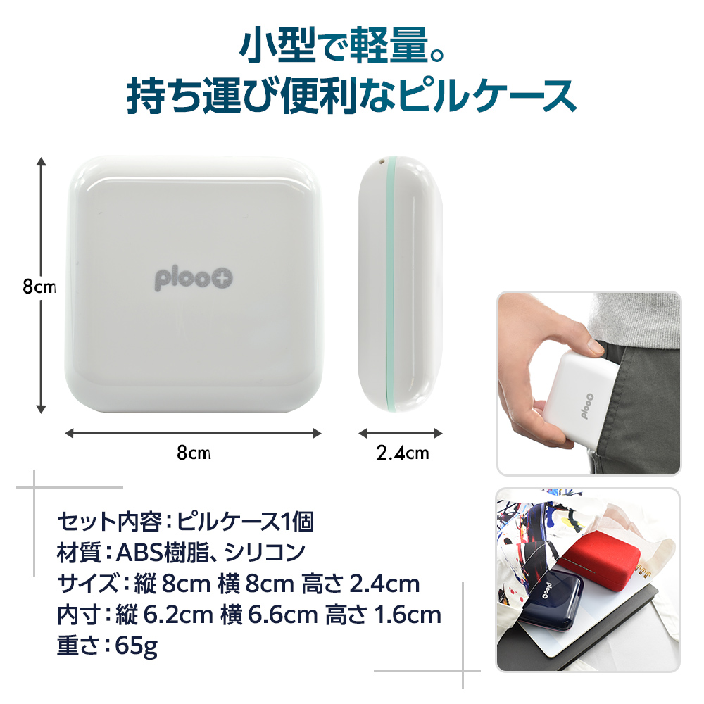 ケースの重さはたったの約65g。軽量なのにたっぷり収納できるので、ポケットやバッグに入れていつでもお薬を持ち運べます。