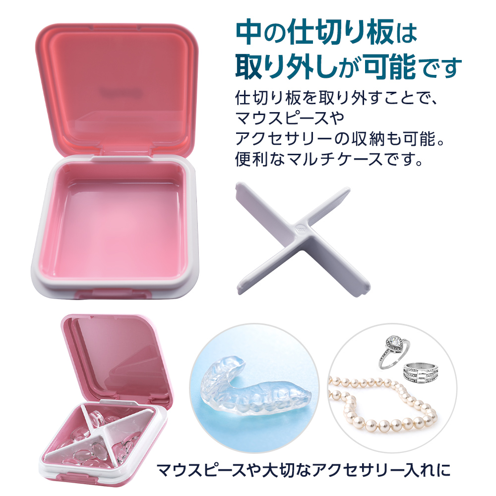 中の仕切り板は取り外しが可能なので、マウスピースやアクセサリーの収納にもぴったり。万能で優秀なピルケースです。