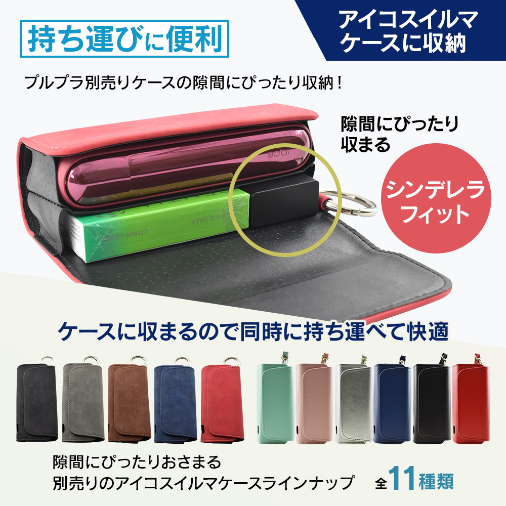 アイコスイルマケースの隙間が気になる方、ケースに入れて持ち運びたい方におすすめです。プルプラ別売のアイコスイルマケースの隙間にぴったり収納!シンデレラフィット!※当社より販売中のアイコスイルマケース11種類のみ対応を確認しておりますので、予めご了承ください。