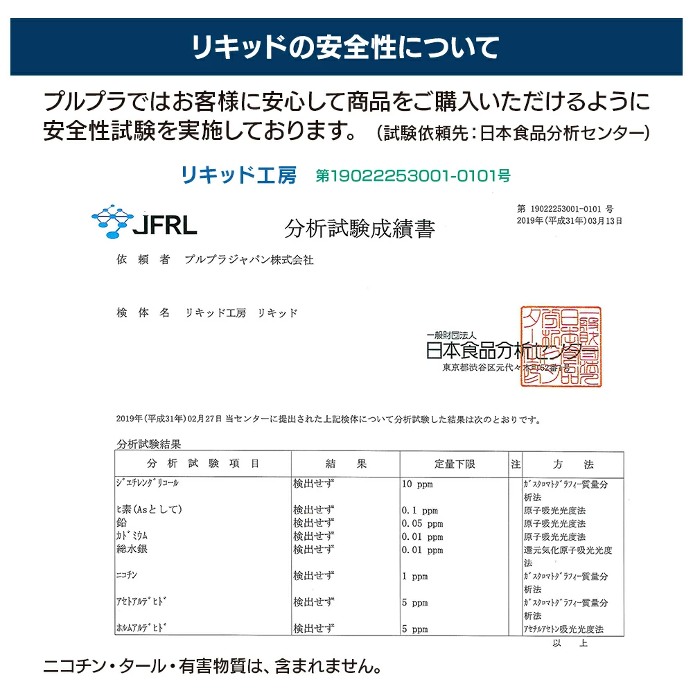 独自の製法により監修、製造した電子タバコ(VAPE)用のリキッドです。国産リキッドメーカーとして素材の品質を落とすことなく味、香りにこだわり、本格派リキッドの開発に成功しました。全て日本国内の衛生管理の行き届いた工場で製造しております。※厚生労働大臣指定の食品添加物のみ100%配合 ※日本食品分析センター検査済み