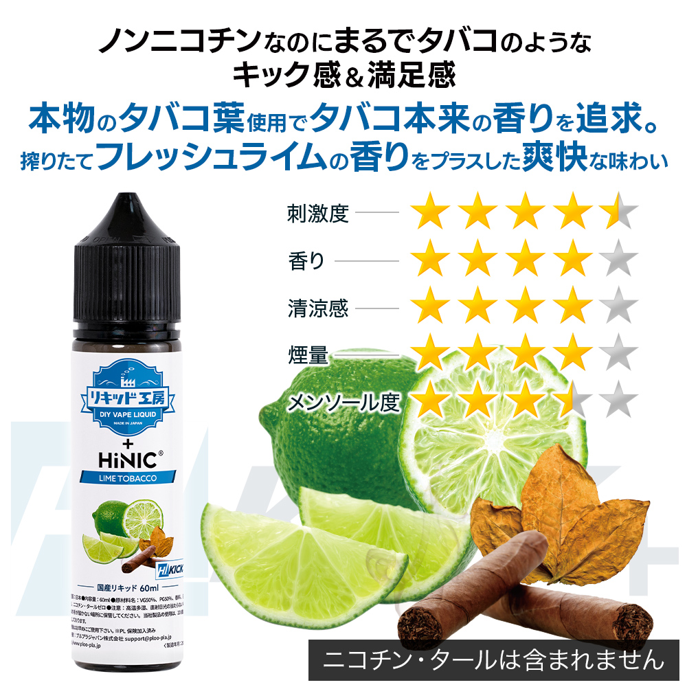 HIKICK+ 電子タバコ リキッド HiNIC配合 ライムタバコ 60ml